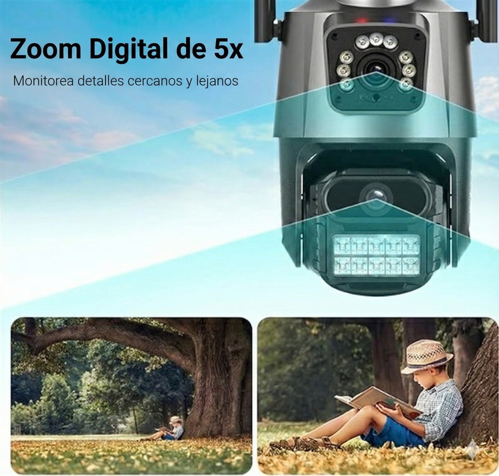 Nuestra cámara con visión nocturna y luz policial te alerta en tiempo real.
