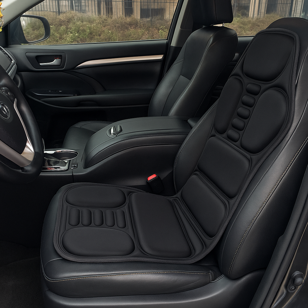 Coloca el cojín masajeador en tu silla, sillón o asiento del auto, asegurándote de que quede firme y cómodo.