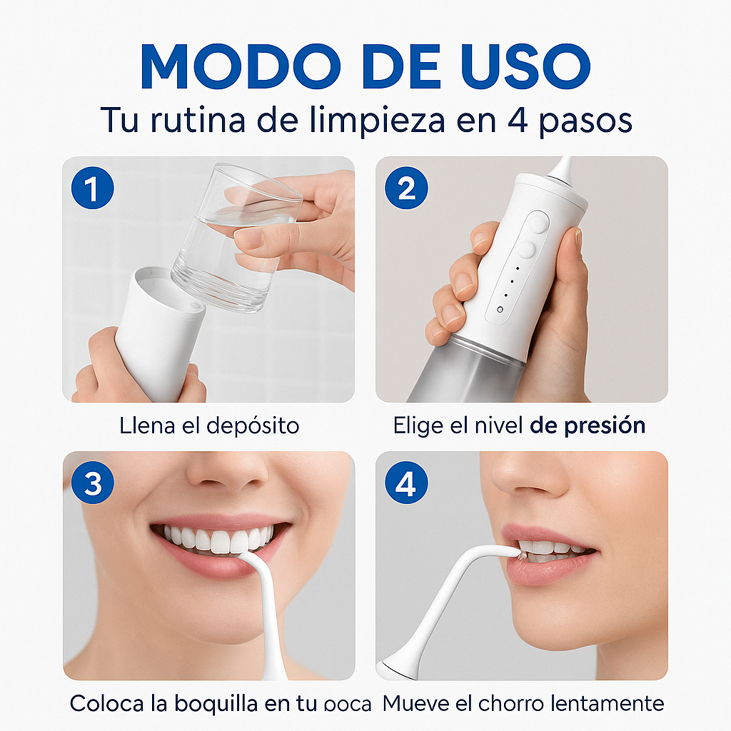 👉 Limpia tu boca completa en solo 10 segundos con nuestro sistema de irrigación profesional.