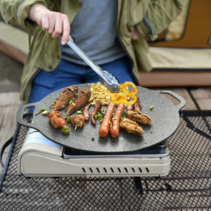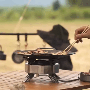 Coloca la plancha antiadherente sobre la cocina a gas o directamente sobre la parrilla o fuego de camping.