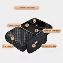Contenido incluido: Caja de pañuelos + portavasos + ranura para teléfonos + bolsillos laterales